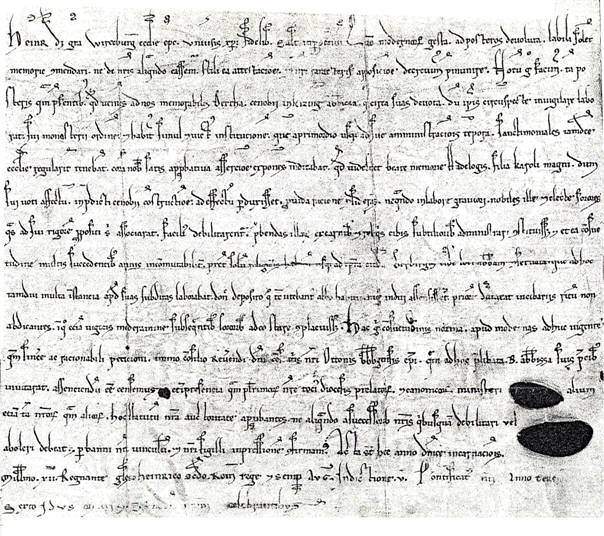Der Name der Heiligen Hadeloga[2] "ist eng verknüpft mit den sagenhaften Anfängen der Klosters"[3] Kitzingen[4]. Bekannt ist sie durch nur ihre Vita[5], deren erste Fassung wohl aus dem 12. Jahrhundert stammt[6], und einem unechten Diplom[7], das sich als am 10. Mai 1012 von Bischof Heinrich von Würzburg ausgefertigt ausgibt[8].25.01.2010